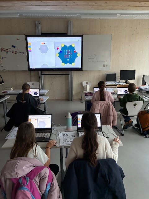 Hier arbeiten wir mit dem Minicomputer Calliope. Er verfügt über Tasten, LED-Lichter, Licht- und Lagesensoren und viele andere Funktionen. Mit etwas Geschick entstehen hier tolle Projekte: